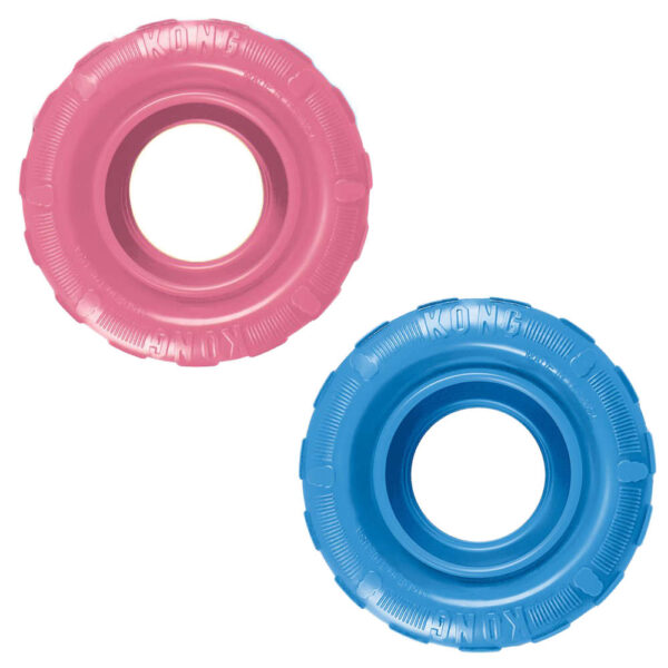 The KONG Puppy Tyre has a stuff able inner track which can be filled with treats or paste to create a mental challenge for puppies while teaching correct chewing habits, fill and freeze for a greater challenge. Use with puppies until they reach 9 months, then they can graduate to Kong Classic Rubber toys.